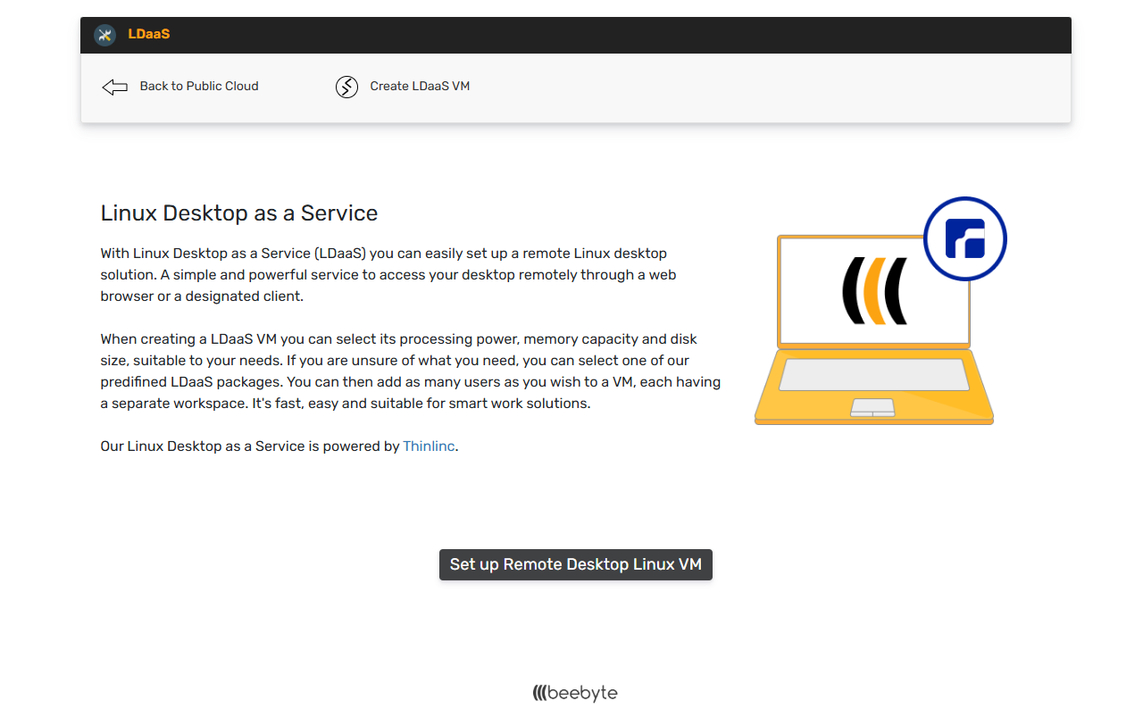Manage your ThinLinc-powered LDaaS instances from beebyte's web portal.